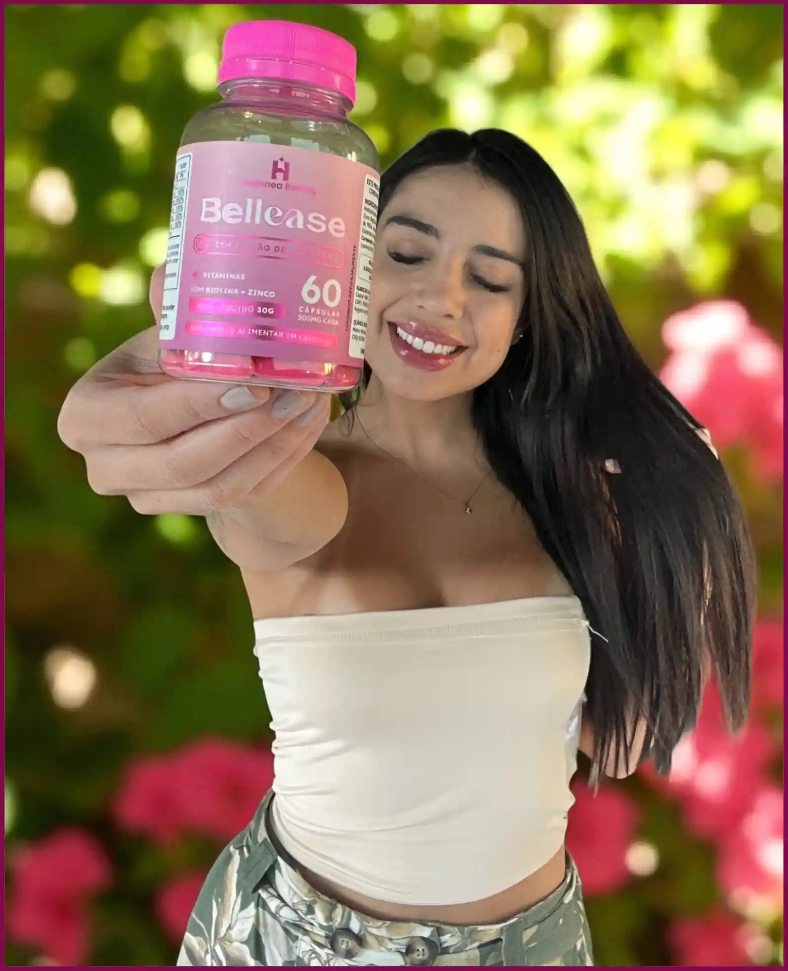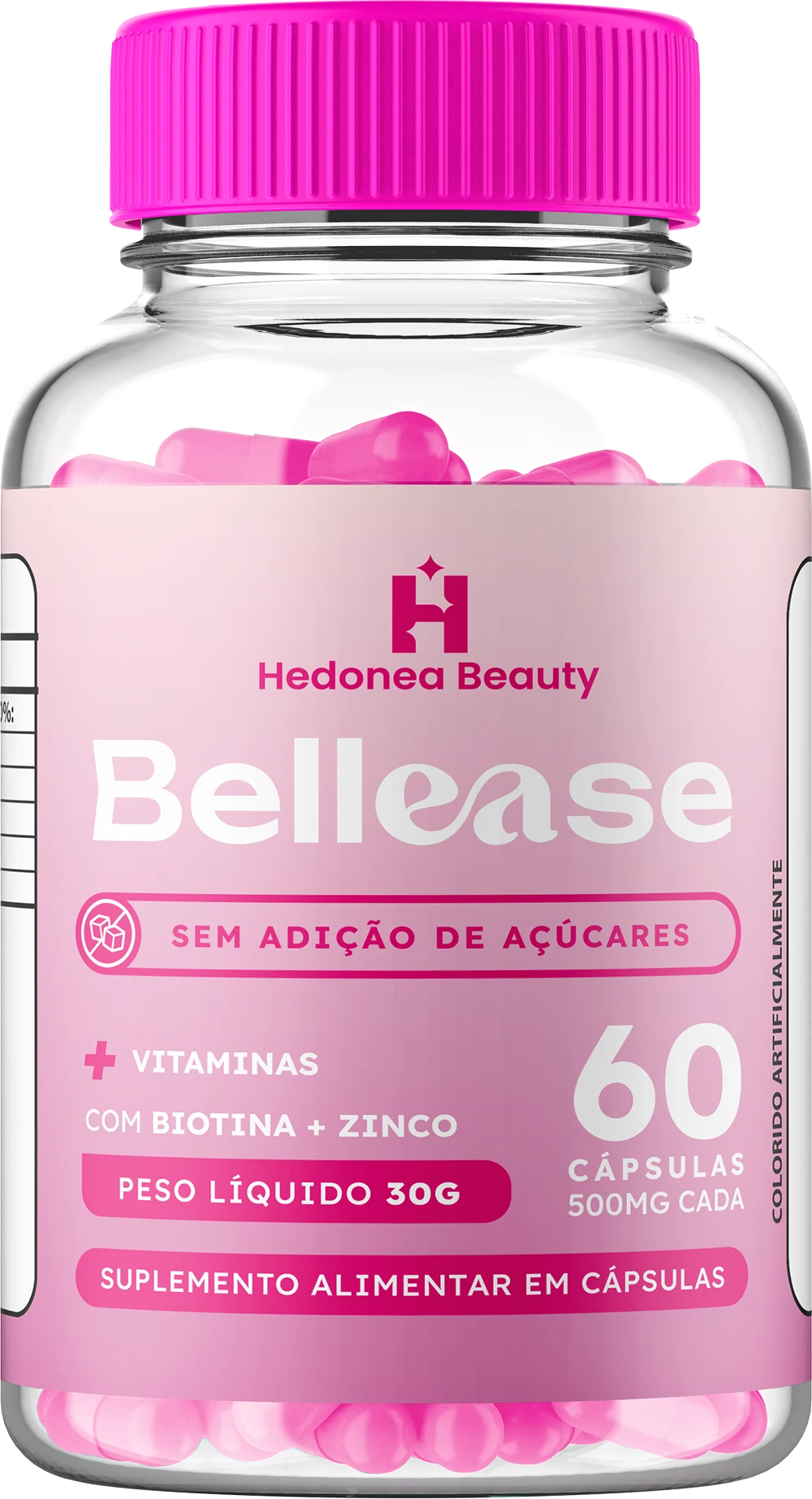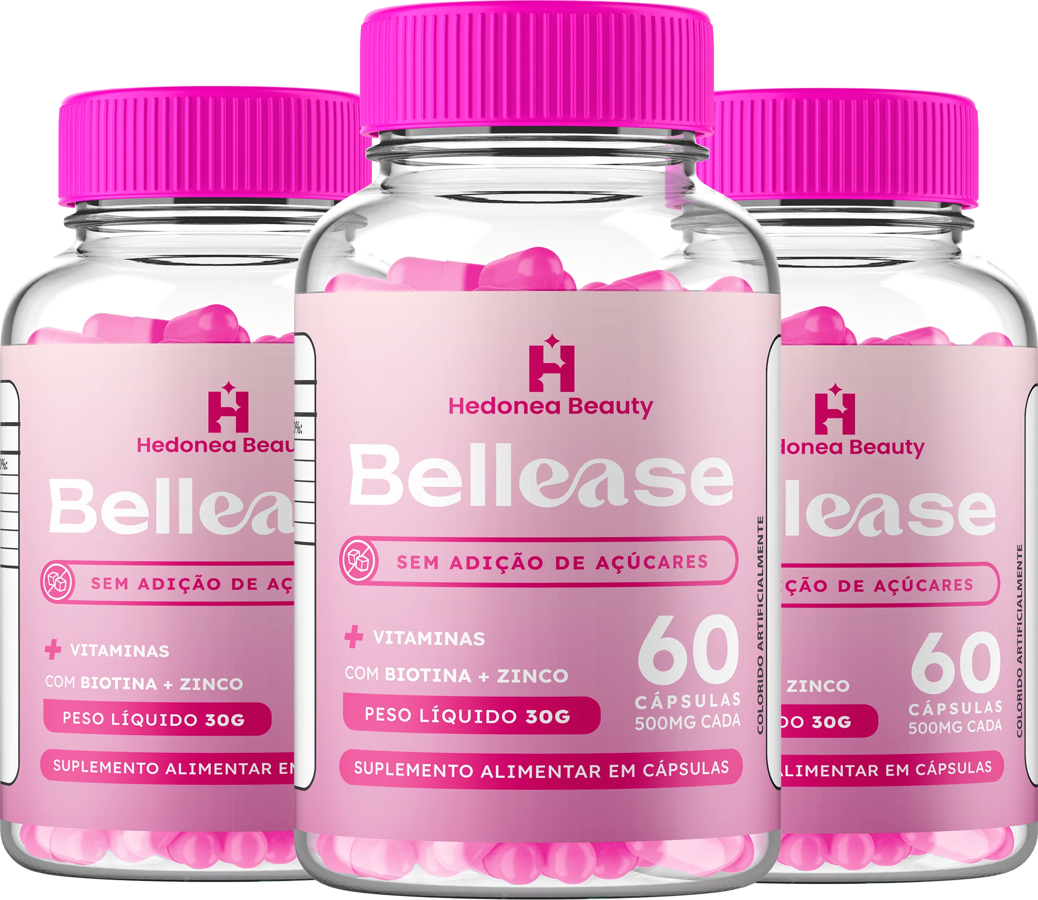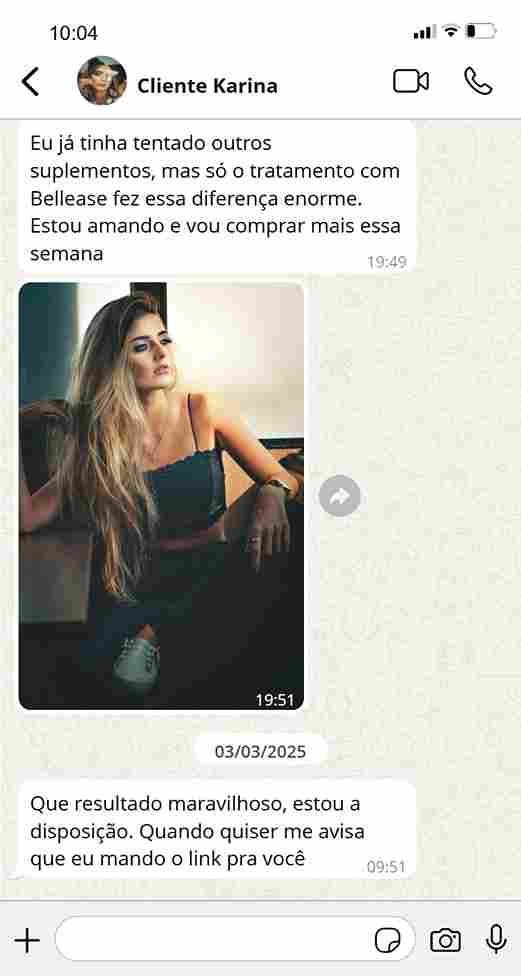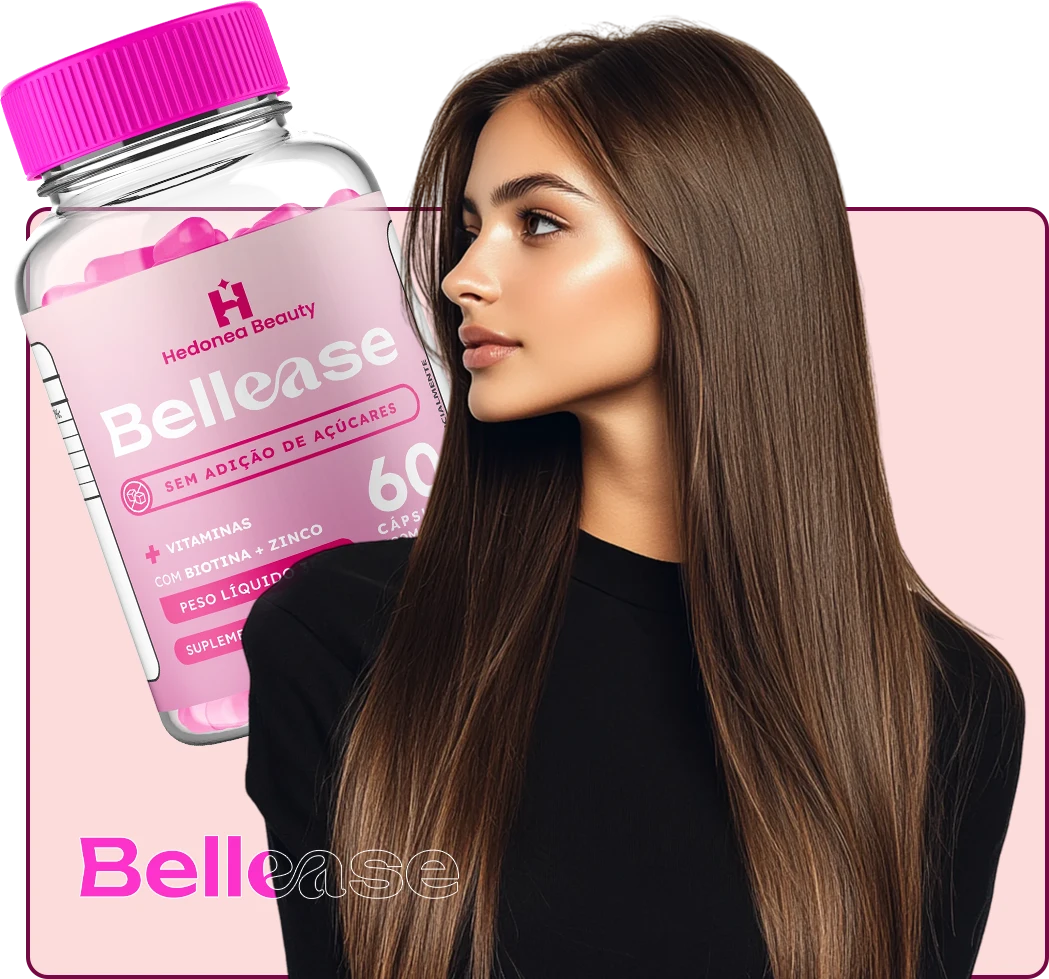 Bellease é um suplemento alimentar desenvolvido para fortalecer cabelos, pele e unhas de dentro para fora. Com uma fórmula avançada, ele nutre e revitaliza, estimulando o crescimento capilar, deixando a pele mais jovem e iluminada e fortalecendo as unhas. Tudo isso de forma natural e segura, para que você tenha uma beleza radiante todos os dias!